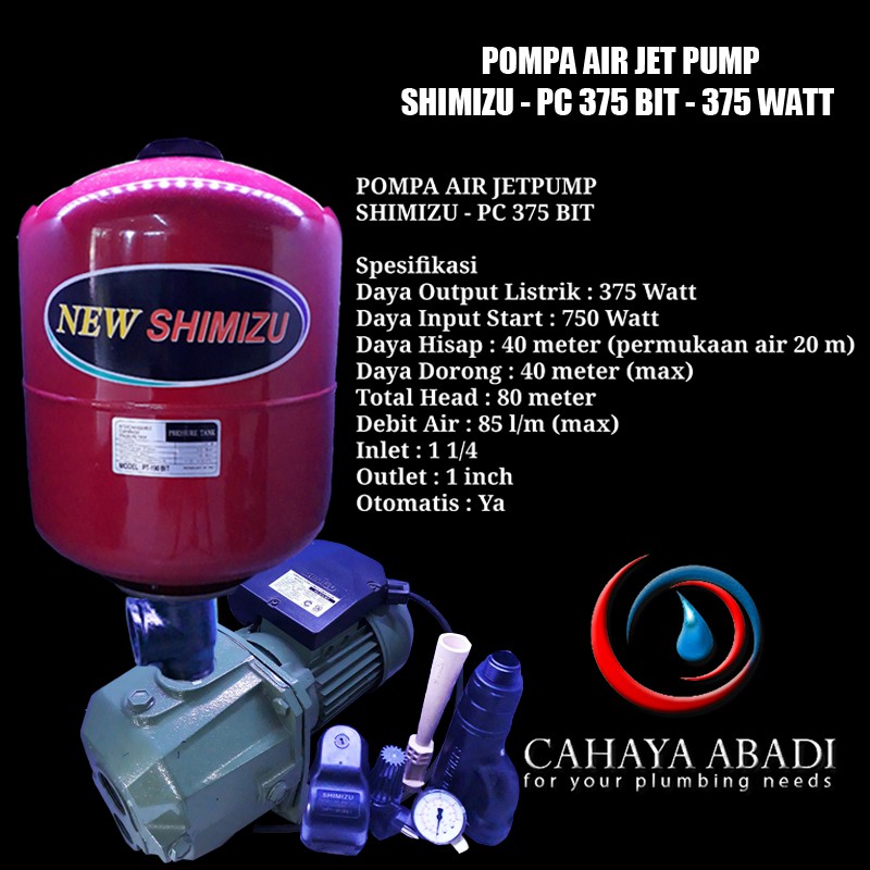 Jual Shimizu JET-100 BIT Pompa Air Semi Jet - Kab ... from ecs7.tokopedia.net 35 derajat celcius diameter pipa : 18 meter (max) daya output listrik : Pompa jetpump 250watt manual, untuk kebutuhanrumah tangga, daya hisap 30meter. Pompa air booster tidak memiliki daya hisap dan umumnya digunakan hanya. Harga pompa air jet pump dengan berbagai spesifikasi dan harga termurah. Jenis pompa air semi jet pump digunakan untuk sumur yang memiliki kedalaman air hingga 11 meter dan tinggi 9 meter. Untuk daya dorong dan debit air yang dihasilkan dari jenis pompa air sumur dangkal 75 watt daya dorongnya hingga 20 bedanya, jenis pompa air jet terdapat tabung, sedangkan semi jet tidak ada tabung yang dapat. Cara untuk meningkatkan daya hisap sebuah mesin pompa air memerlukan perhitungan yang perhitungan tentang kekuatan daya hisap mesin pompa air.